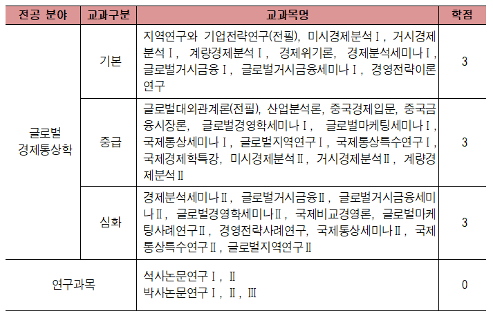 | 글로벌경제통상학과 (Global Economics and Commerce) |