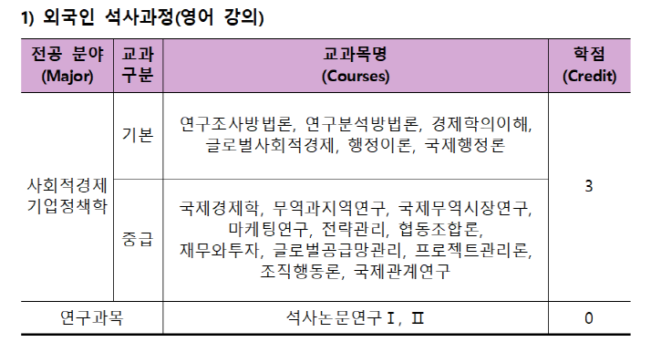 This course covers the basic knowledge of trade, such as trade theory and trade business, as well as the concept and current status of fair trade. In particular, cases of fair trade spreading between developing and developed countries are studied. - 석사논문연구Ⅰ (Research for the Master’s DegreeⅠ) 0학점