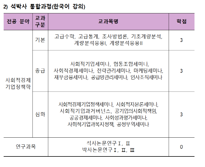 - 박사논문연구Ⅰ (Research for the Doctoral DegreeⅠ) 0학점